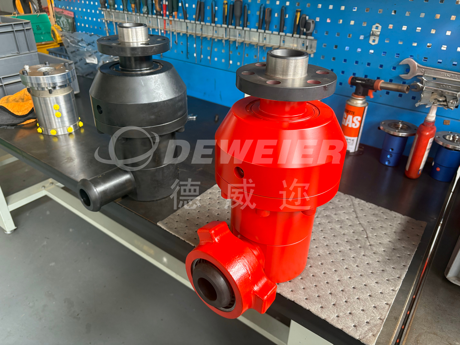 德威邇公司憑借其強(qiáng)大的自主研發(fā)與精密制造能力,成功推出了應(yīng)用于采油領(lǐng)域的超高壓旋轉(zhuǎn)接頭。該產(chǎn)品在極端工況下表現(xiàn)卓越,是高壓流體輸送系統(tǒng)中的關(guān)鍵核心部件。